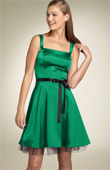 Red is and will always be my favorite! Why to wear it only on proms? If I were you, I would choose this one for a Christmas party too. This is a stretch dress with a swirling skirt and stripes of sheer mesh at hem and neckline.