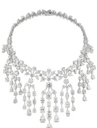 Glorious fine jewels in the 65 piece Red Carpet Collection of this year includes a range of overflowing diamond necklaces including a variety set inspired by floral theme with more than 1,100 diamonds, rubies and pink sapphires, while more playful makings include a ring in a shape of apple.
