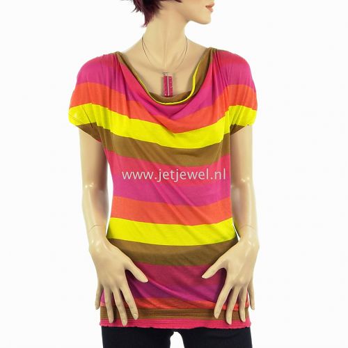 Do you love strips? I do! This top with hot strips like orange, yellow, red, brown and pink is superb to wear in summers, paired with necklace with equally colorful pendants.