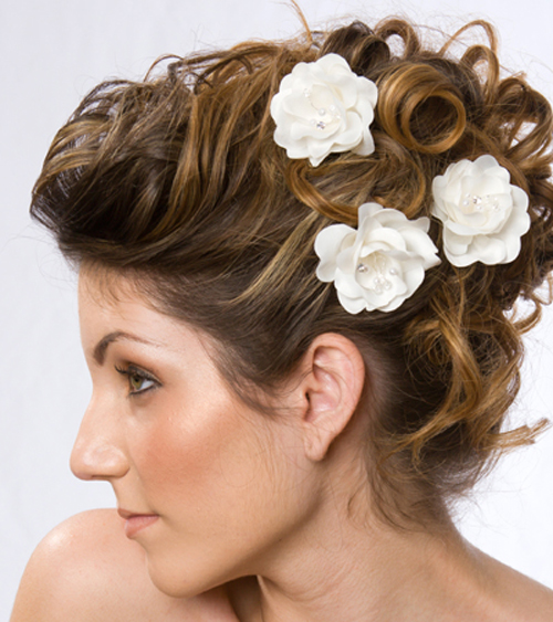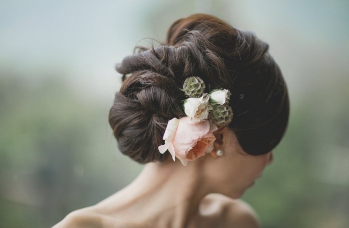 This is another gorgeous hairstyle but you will need a stylist for it. Look at the three roses of big and small sizes which add an altogether different charm to the style. You can also make use of other matching accessories along with flowers, just like in this style a couple of tiny metal buttons have been used.